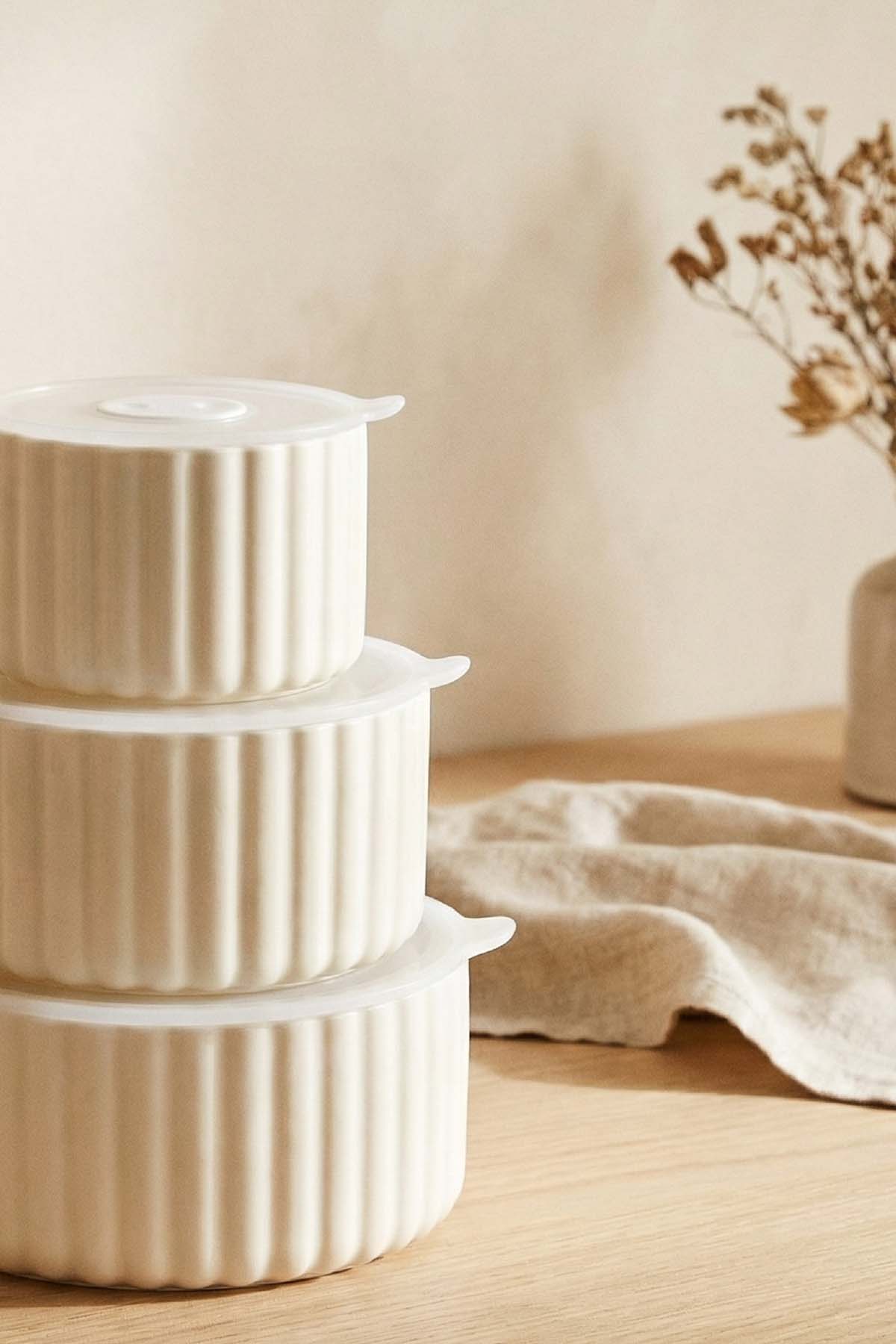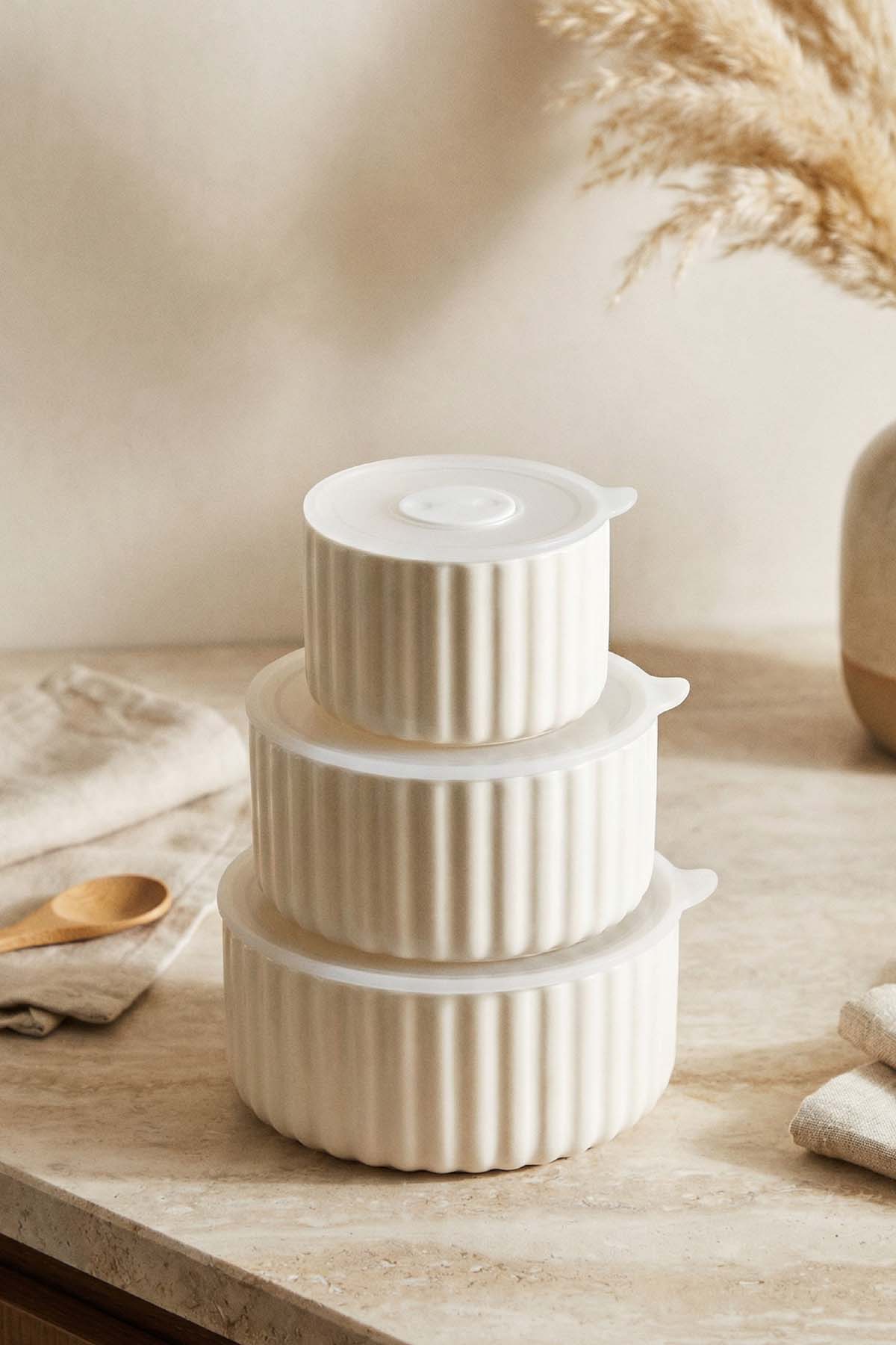Blush 3 lü Kapaklı Saklama Kabı - 10/13/15 cm