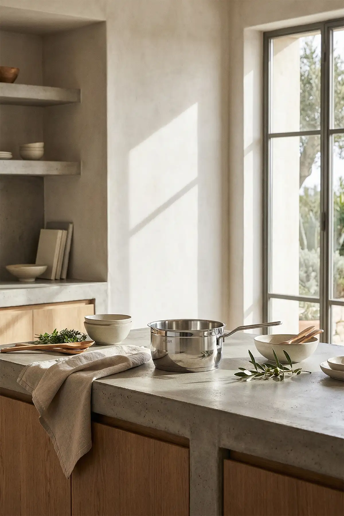 Yarı mat paslanmaz çelik gövdesi modern bir estetik sunarken, ergonomik çelik döküm sapları güvenli ve konforlu bir tutuş sağlar.