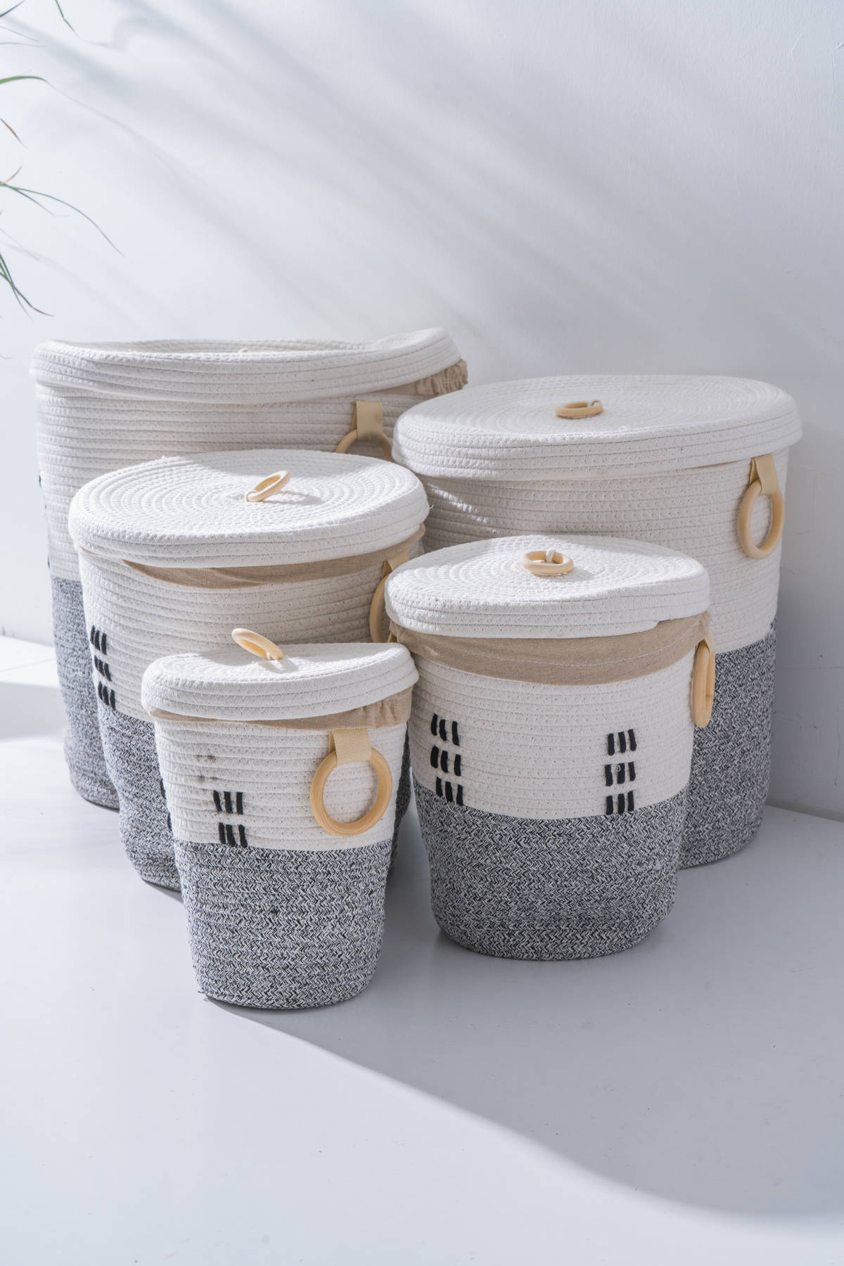 Vera Hasır Sepet Seti, açık griyle sade ve huzurlu bir atmosfer oluşturur.